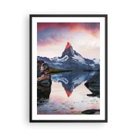 Poster in einem schwarzem Rahmen - Ein Berg, der sich bei Sonnenuntergang in einem See spiegelt - 50x70cm - Das Herz der Berge ist heiß - Moderne Wanddekoration für Wohnzimmer und Schlafzimmer ARTTOR