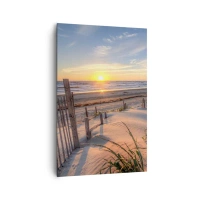 Bild auf Leinwand - Leinwandbild - Sonnenuntergangsstrand mit Holzzaun - 80x120cm - Schein und Schatten des Windes - Moderne Wanddekoration für Wohnzimmer und Schlafzimmer ARTTOR