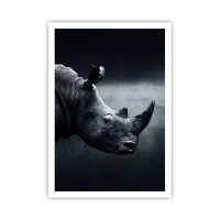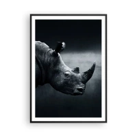 Bild auf Leinwand - Leinwandbild - Schwarz-Weiß-Porträt eines Nashorns vor dunklem Hintergrund - 70x100cm - Richtiges Profil - Moderne Wanddekoration für Wohnzimmer und Schlafzimmer ARTTOR