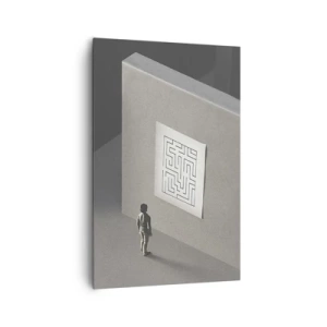 Bild auf Leinwand - Leinwandbild - Eine Figur in einem Labyrinth, die auf eine hängende Karte schaut - 80x120cm - Aber wo bin ich? - Moderne Wanddekoration für Wohnzimmer und Schlafzimmer ARTTOR
