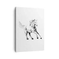 Bild auf Leinwand - Leinwandbild - Skizze eines galoppierenden Pferdes in Schwarz-Weiß-Tönen - 50x70cm - Ungezähmte Seele - Moderne Wanddekoration für Wohnzimmer und Schlafzimmer ARTTOR