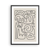 Poster in einem schwarzem Rahmen - Moderne Abstraktion in Form einer schwarzen Linie auf beigem Hintergrund - 50x70cm - Folge der Spur - Moderne Wanddekoration für Wohnzimmer und Schlafzimmer ARTTOR