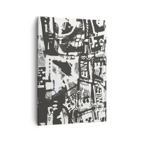 Bild auf Leinwand - Leinwandbild - Abstraktes monochromes Retro-Muster - 50x70cm - Ordnung oder Chaos? - Moderne Wanddekoration für Wohnzimmer und Schlafzimmer ARTTOR