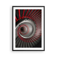 Poster in einem schwarzem Rahmen - Wendeltreppe in Schwarz und Weiß mit roten Handläufen - 50x70cm - Architekturspaß - Moderne Wanddekoration für Wohnzimmer und Schlafzimmer ARTTOR