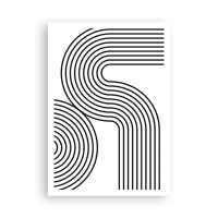 Bild auf Leinwand - Leinwandbild - Ein abstraktes Gemälde mit schwarzen Linien, die geometrische Muster auf weißem Hintergrund erzeugen. - 70x100cm - An der Kurve - Moderne Wanddekoration für Wohnzimmer und Schlafzimmer ARTTOR