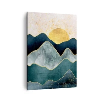 Poster - Abstrakte Berge und goldene Sonne im Hintergrund - 50x70cm - Hinter den sieben Bergen - Moderne Wanddekoration für Wohnzimmer und Schlafzimmer ARTTOR