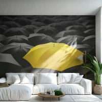Maßgeschneiderte Fototapete Standard Eco - Auf Wiedersehen Trauer - Gelbe Regenschirme, Grafik, Konzept