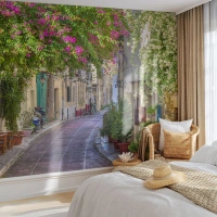 Maßgeschneiderte Fototapete Standard Eco - Blühende Gasse - Die Architektur, Griechenland, Stadt