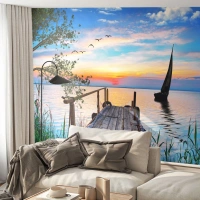 Fototapete Standard Eco - Richtung: breites Wasser - Landschaft, See, Segelboot - 350x256 cm