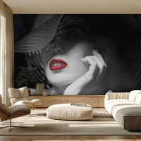 Fototapete Standard Eco - Eine Studie in Scharlachrot - Frau, rote Lippen, Mode - 300x210 cm