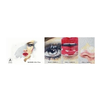 Fototapeten Muster Premium Canvas - Abspiegeln in einem Wassertropfen - Das Gesicht einer Frau, Frau, rote Lippen - 100x30 cm