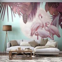 Fototapete Premium Canvas - Drei Vogelgnaden - Flamingos, Vögel, Natur - 200x140 cm