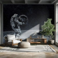 Maßgeschneiderte selbstklebende Fototapete Deluxe Sticker - Auf der Milchstraße - Kosmos, Astronaut, Fantasie