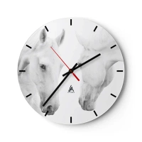 Wanduhr - Glasuhr - Zwei weiße Pferde stehen einander gegenüber auf weißem Hintergrund - 30x30cm - Ist das Freundschaft...? - Moderne Wanddekoration für Wohnzimmer, Küche und Schlafzimmer ARTTOR