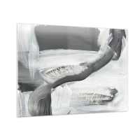 Glasbild - Bild auf glas - Schwarz-Weiß-Abstraktion mit dynamischen Pinselstrichen. - 70x50cm - Entscheidender Schritt - Moderne Wanddekoration für Wohnzimmer und Schlafzimmer ARTTOR