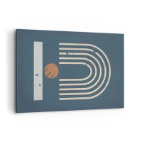 Bild auf Leinwand - Leinwandbild - Geometrisches Muster in Marineblau-, Beige- und Orangetönen auf dunklem Hintergrund - 120x80cm - Geometrie auf dem Granatapfel - Moderne Wanddekoration für Wohnzimmer und Schlafzimmer ARTTOR