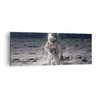 Bild auf Leinwand - Leinwandbild - Astronaut auf der Mondoberfläche mit der Erde im Hintergrund - 140x50cm - Grüße vom Mond - Moderne Wanddekoration für Wohnzimmer und Schlafzimmer ARTTOR