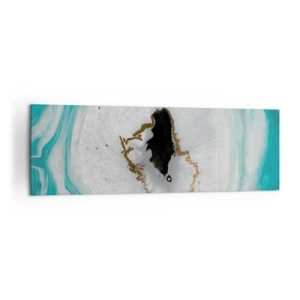 Bild auf Leinwand - Leinwandbild - Abstraktes Geodenmotiv in Türkis-, Weiß- und Goldtönen - 160x50cm - Nach Innen eindringen - Moderne Wanddekoration für Wohnzimmer und Schlafzimmer ARTTOR