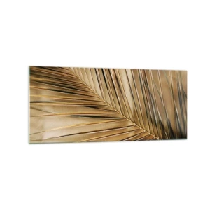 Glasbild - Bild auf glas - Goldenes Palmblatt auf einem einfarbigen Hintergrund - 120x50cm - Natürliche Kolonnade - Moderne Wanddekoration für Wohnzimmer und Schlafzimmer ARTTOR