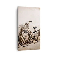 Bild auf Leinwand - Leinwandbild - Zwei Fahrräder lehnen an einer alten Wand im Retro-Stil - 80x120cm - Der unvergessliche Charme der Vergangenheit - Moderne Wanddekoration für Wohnzimmer und Schlafzimmer ARTTOR