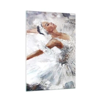 Glasbild - Bild auf glas - Eine Ballerina in einem weißen Kleid tanzt - 80x120cm - Zart und leicht wie Tüll - Moderne Wanddekoration für Wohnzimmer und Schlafzimmer ARTTOR