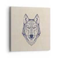 Bild auf Leinwand - Leinwandbild - Ein geometrischer Wolf auf hellem Hintergrund mit minimalistischen Mustern. - 70x100cm - Ein Alpha mit durchdringendem Blick - Moderne Wanddekoration für Wohnzimmer und Schlafzimmer ARTTOR