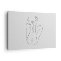 Bild auf Leinwand - Leinwandbild - Minimalistische Strichzeichnung von Gesicht und Händen - 70x50cm - Wovon Mädchen träumen - Moderne Wanddekoration für Wohnzimmer und Schlafzimmer ARTTOR