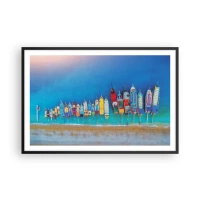 Poster in einem schwarzem Rahmen - Bunte Boote in einer Reihe am Ufer aufgereiht - 100x70cm - Aus der Vogelperspektive - Moderne Wanddekoration für Wohnzimmer und Schlafzimmer ARTTOR