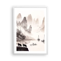 Bild auf Leinwand - Leinwandbild - Eine malerische Landschaft im asiatischen Stil mit nebligen Bergen - 70x100cm - Der exotische Alltag des Ostens - Moderne Wanddekoration für Wohnzimmer und Schlafzimmer ARTTOR