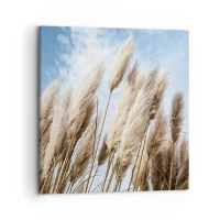 Bild auf Leinwand - Leinwandbild - Zarte Pampasgräser vor blauem Himmel mit leichten Wolken - 80x120cm - Sonnige und windige Liebkosungen - Moderne Wanddekoration für Wohnzimmer und Schlafzimmer ARTTOR
