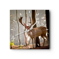 Glasbild - Bild auf glas - Hirsche im Wald im Morgennebel - 80x120cm - Das Licht der Jugend - Moderne Wanddekoration für Wohnzimmer und Schlafzimmer ARTTOR