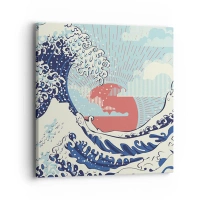 Bild auf Leinwand - Leinwandbild - Meereswellen und ein Sonnenuntergang im japanischen Stil - 70x100cm - Von japanischer Inspiration - Moderne Wanddekoration für Wohnzimmer und Schlafzimmer ARTTOR