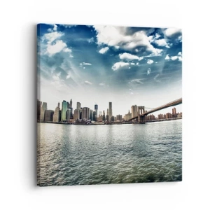 Bild auf Leinwand - Leinwandbild - Panorama der Stadt mit einer Brücke vor dem blauen Himmel - 50x70cm - Glasinsel - Moderne Wanddekoration für Wohnzimmer und Schlafzimmer ARTTOR