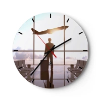 Glasbild - Bild auf glas - Geschäftsmann am Flughafen mit einem Flugzeug im Hintergrund - 80x120cm - Du hast Zeit, lass dir Zeit - Moderne Wanddekoration für Wohnzimmer und Schlafzimmer ARTTOR