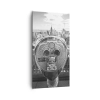 Glasbild - Bild auf glas - Monochromer Blick durch das Teleskop auf das Stadtpanorama - 80x120cm - Stadt über den Städten - Moderne Wanddekoration für Wohnzimmer und Schlafzimmer ARTTOR