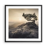 Bild auf Leinwand - Leinwandbild - Ein einsamer Baum auf einem felsigen Gipfel im Sonnenlicht - 100x70cm - Das Leben gewinnt immer - Moderne Wanddekoration für Wohnzimmer und Schlafzimmer ARTTOR