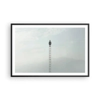 Poster in einem schwarzem Rahmen - Ein Mann auf einer Leiter, die in den Himmel ragt - 100x70cm - Erhebe dich darüber! - Moderne Wanddekoration für Wohnzimmer und Schlafzimmer ARTTOR