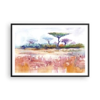 Poster in einem schwarzem Rahmen - Eine malerische Savannenlandschaft in Aquarellfarben - 100x70cm - Savannah-Farben - Moderne Wanddekoration für Wohnzimmer und Schlafzimmer ARTTOR
