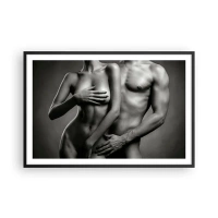 Poster in einem schwarzem Rahmen - Schwarz-weiße Darstellung weiblicher und männlicher Körper in künstlerischer Pose - 100x70cm - Adam und Ewa - Moderne Wanddekoration für Wohnzimmer und Schlafzimmer ARTTOR