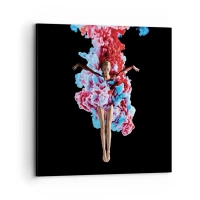 Bild auf Leinwand - Leinwandbild - Eine Tänzerin, umgeben von buntem Rauch auf schwarzem Hintergrund - 70x100cm - In voller Blüte - Moderne Wanddekoration für Wohnzimmer und Schlafzimmer ARTTOR