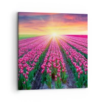 Bild auf Leinwand - Leinwandbild - Ein Tulpenfeld bei Sonnenuntergang - 80x120cm - Schönheitsfarm - Moderne Wanddekoration für Wohnzimmer und Schlafzimmer ARTTOR