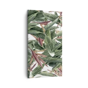Bild auf Leinwand - Leinwandbild - Ein dekoratives Blattmotiv in Grün- und Burgundertönen auf hellem Hintergrund - 80x120cm - Smaragd-lila Dickicht - Moderne Wanddekoration für Wohnzimmer und Schlafzimmer ARTTOR
