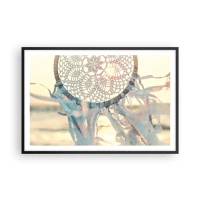 Poster in einem schwarzem Rahmen - Ein zarter Traumfänger vor dem Hintergrund der untergehenden Sonne - 100x70cm - Totem aus Spitze - Moderne Wanddekoration für Wohnzimmer und Schlafzimmer ARTTOR