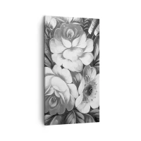 Bild auf Leinwand - Leinwandbild - Schwarze und weiße Blumen in einer klassischen und eleganten Komposition - 80x120cm - Schön auch in Grau - Moderne Wanddekoration für Wohnzimmer und Schlafzimmer ARTTOR