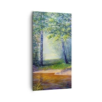 Bild auf Leinwand - Leinwandbild - Ein Waldbach, umgeben von Birken und Sonnenschein - 80x120cm - Idyllische Landschaft - Moderne Wanddekoration für Wohnzimmer und Schlafzimmer ARTTOR