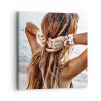 Bild auf Leinwand - Leinwandbild - Eine Frau am Strand mit wehendem Haar in der Sonne - 50x70cm - Eine Schwester von Wasser und Sonne - Moderne Wanddekoration für Wohnzimmer und Schlafzimmer ARTTOR