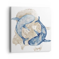 Bild auf Leinwand - Leinwandbild - Abstrakte Blauwale auf hellem Hintergrund - 70x50cm - Freundschaft oder Liebe? - Moderne Wanddekoration für Wohnzimmer und Schlafzimmer ARTTOR