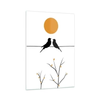 Glasbild - Bild auf glas - Vögel auf einer Linie mit einer gelben Sonne - 80x120cm - Abend der Nachtigallen - Moderne Wanddekoration für Wohnzimmer und Schlafzimmer ARTTOR