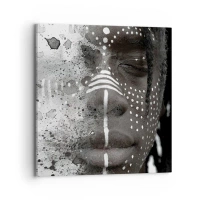 Bild auf Leinwand - Leinwandbild - Künstlerisches Gesichtsporträt mit abstrakten weißen Mustern - 80x120cm - Entdecke den Urgeist - Moderne Wanddekoration für Wohnzimmer und Schlafzimmer ARTTOR