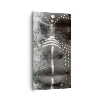 Glasbild - Bild auf glas - Künstlerisches Gesichtsporträt mit abstrakten weißen Mustern - 80x120cm - Entdecke den Urgeist - Moderne Wanddekoration für Wohnzimmer und Schlafzimmer ARTTOR